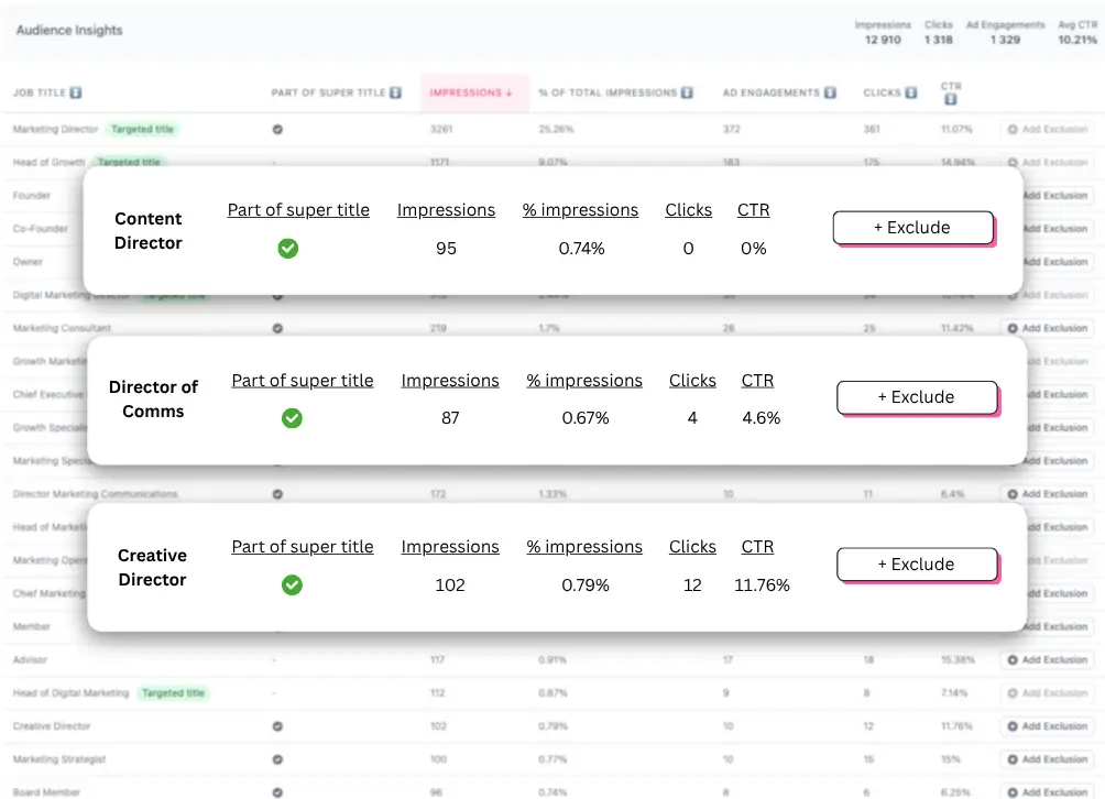Use our one-click exclusions to ensure you're only targeting relevant titles and companies.