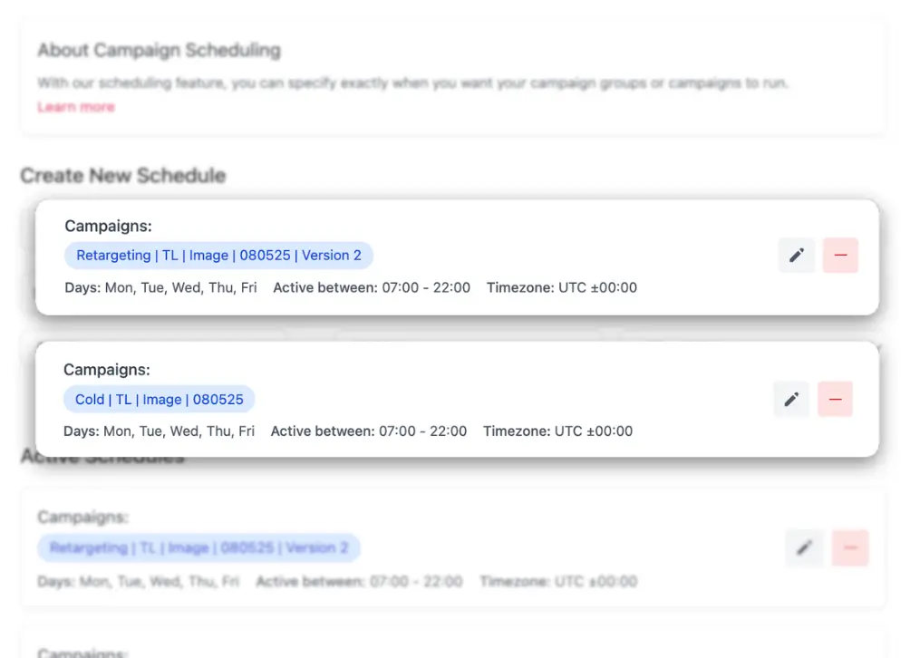 By default, your LinkedIn Ads are set to show all the time. When scheduling campaigns through Fibbler, you can ensure your budget is used wisely by activating them when your target audience is most active.
