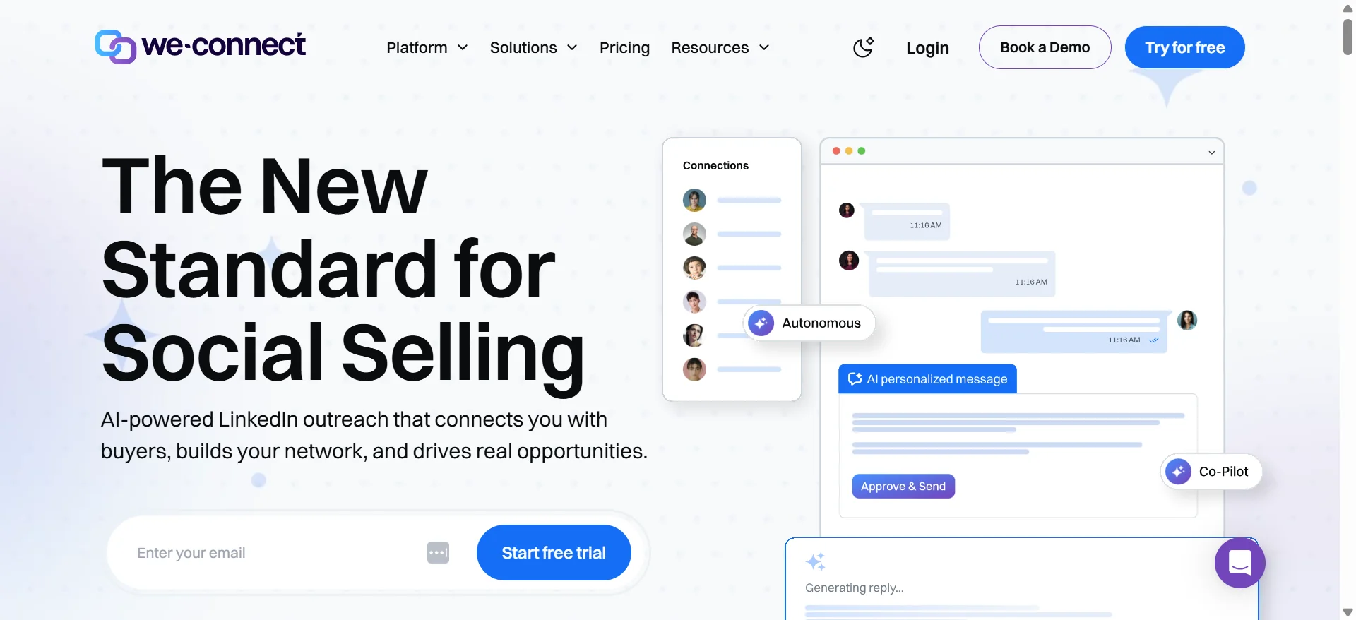 | We-Connect | Social workflows, AB tests, team features, AI assist | Distributed sales organizations | $69/month | ✗ |