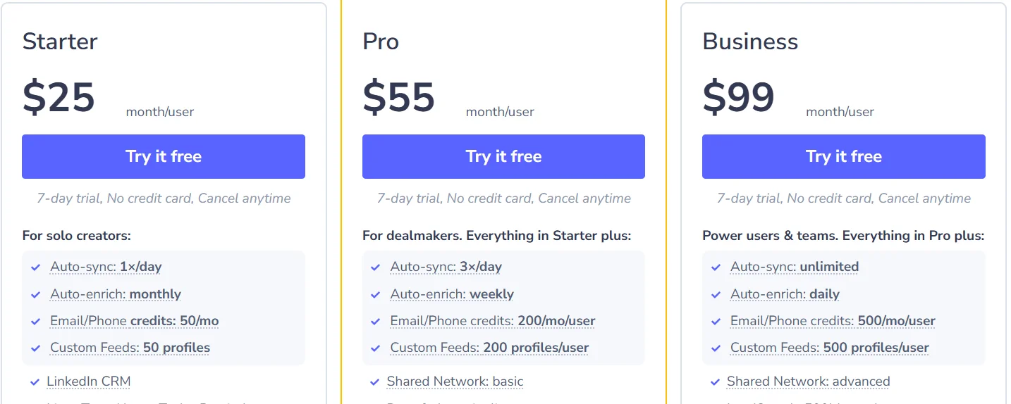 - The Pro plan costs $99 per user/month for multi-channel automation on LinkedIn, X, and email.