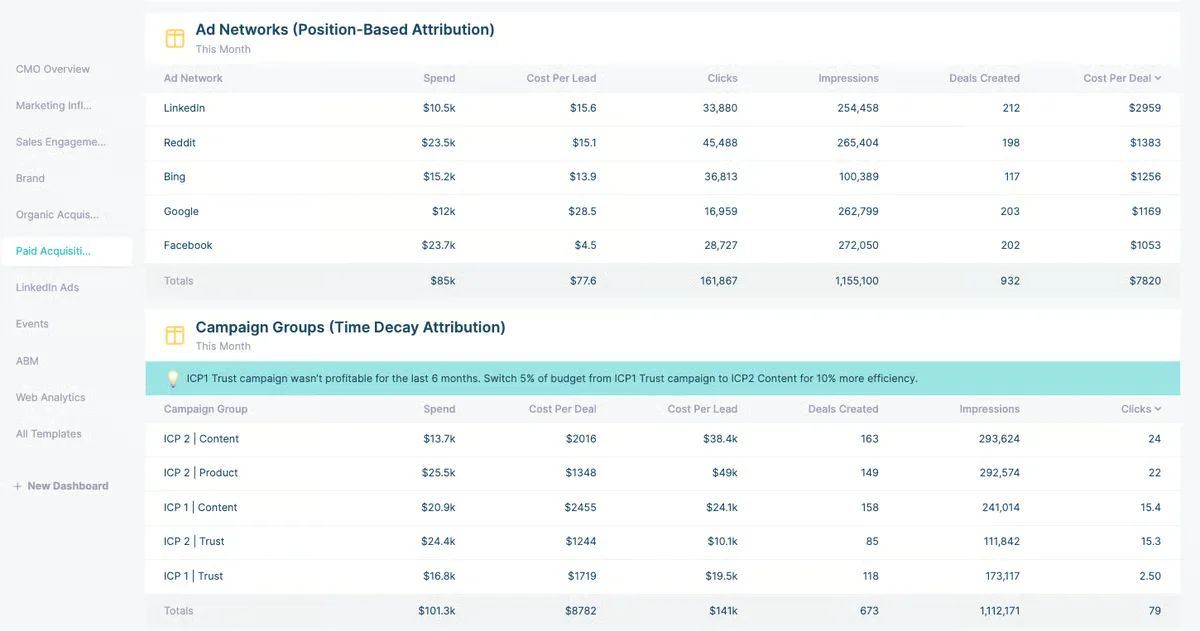 - Multi-touch attribution across LinkedIn, Google, and more