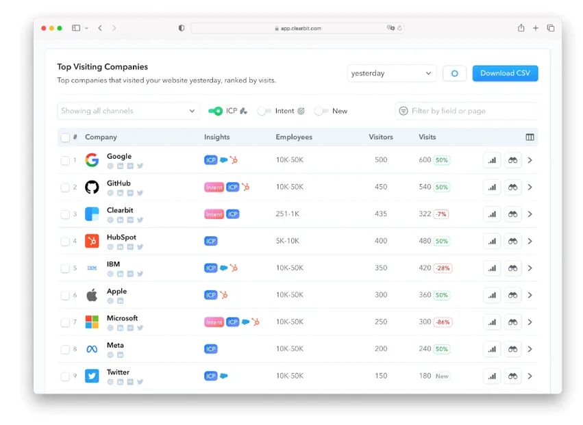 Clearbit (now part of HubSpot) is a data enrichment and intent platform that embeds firmographic, technographic, and behavioral data directly into your HubSpot instance. It eliminates the need for external tools by making enrichment and intent a native CRM feature.
