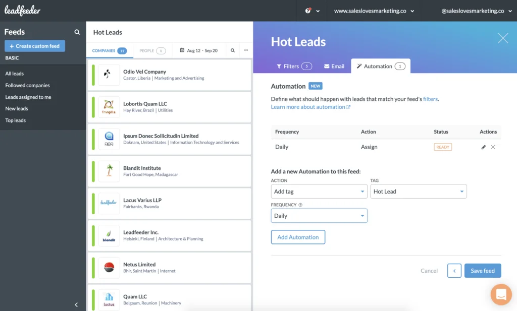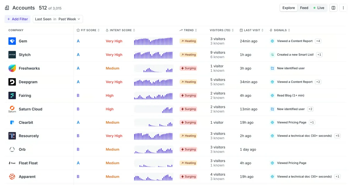 - Custom feed filters to segment visitors by behavior, company size, or location