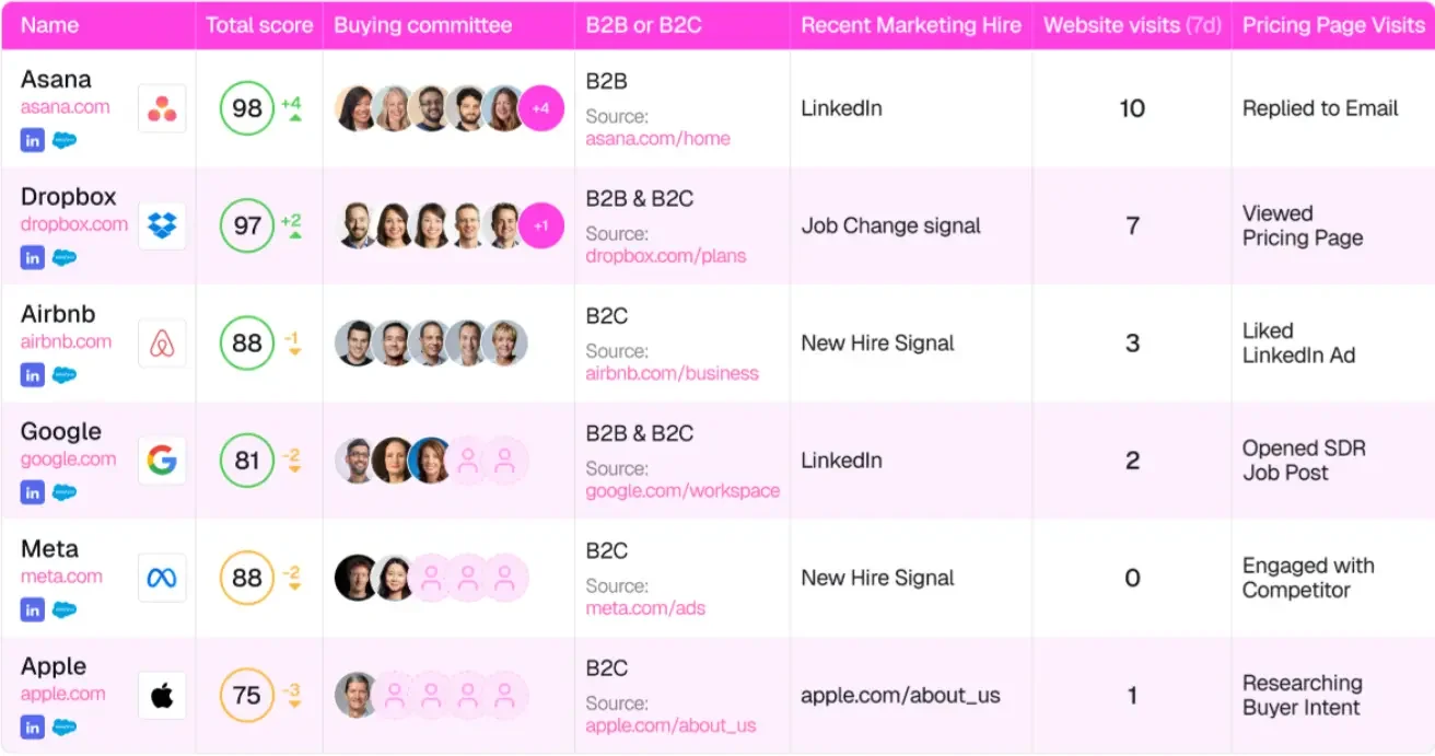 | 6sense | Large-scale ABM | "Dark Funnel" visibility | Uncovers accounts researching your category across the web, even before they land on your specific website. | ⭐ 4.3 | Custom |